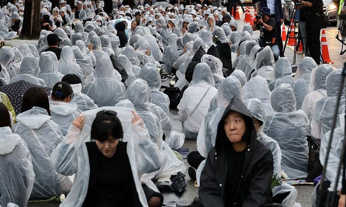 지난 15일 대전시교육청 옆 도로에서 사망한 교사 추모제가 열리고 있다. 연합뉴스 |