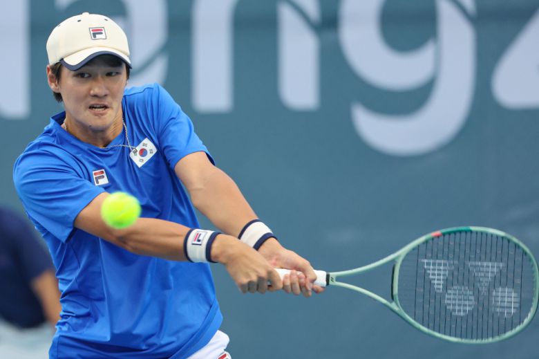 권순우가 테니스 남자 복식 준준결승 홍성찬과 함께 나서 일본을 꺾고 4강에 올랐다. 연합뉴스