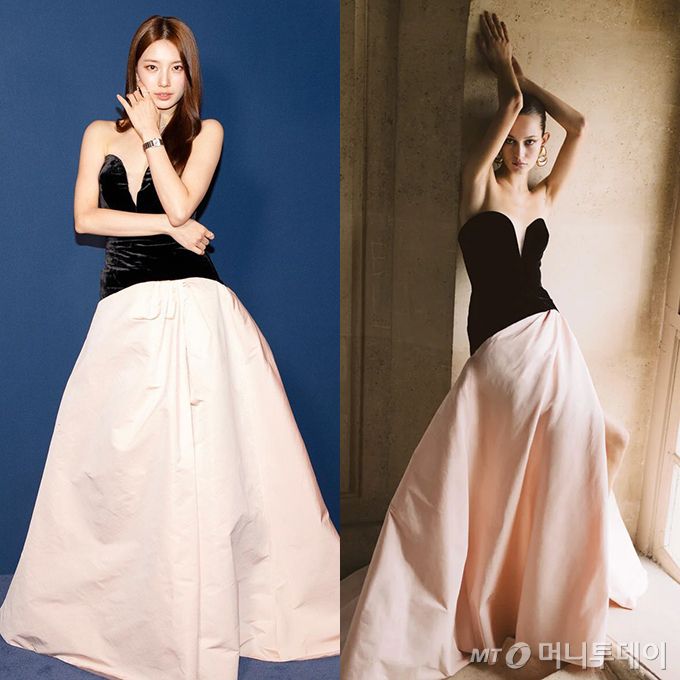 수지, 과감하게 파인 '1026만원대' 드레스…모델과 어떻게 달라?