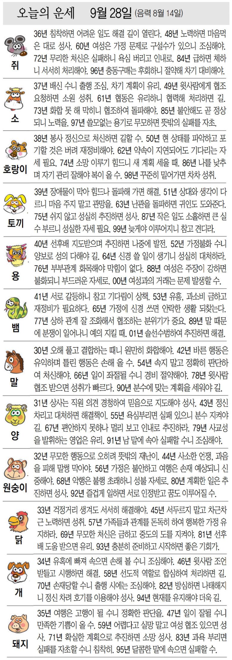 [오늘의 운세/9월 28일]