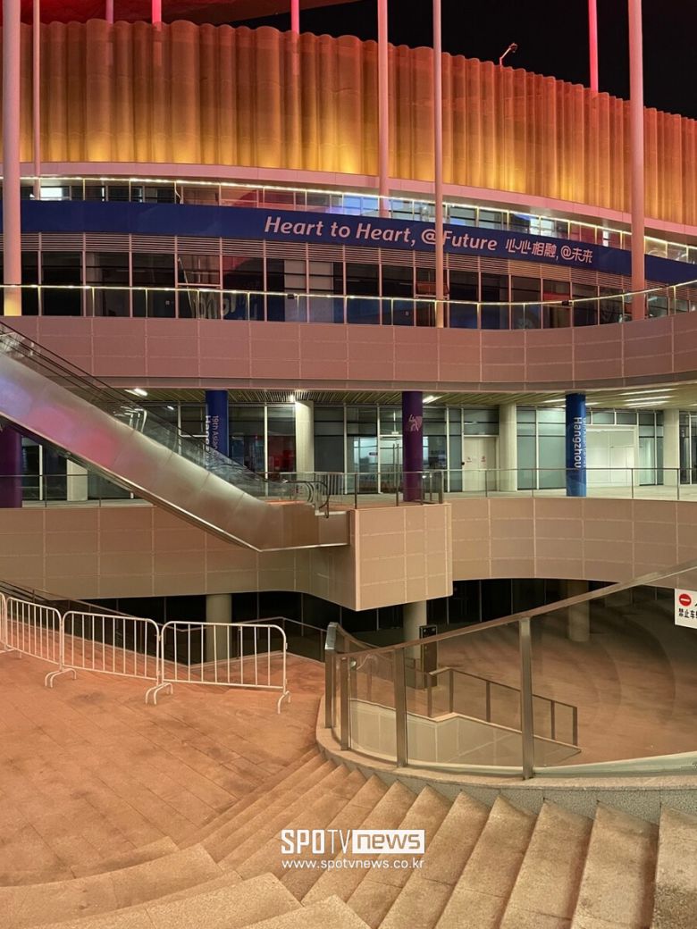 현장 책임자인 첸유웨이는 조직위를 통해 "잔디는 특별해 보이지 않지만 기술적 요구 기준이 매우 높다. 인조잔디 아래 첨단 배수 시설이 설치됐다. 빗물이 잔디를 통해 스며들어 하부의 파이프로 배출된다. 폭우가 내려도 한두 시간이 지나면 물이 고이지 않는다"고 자신감을 보였다.