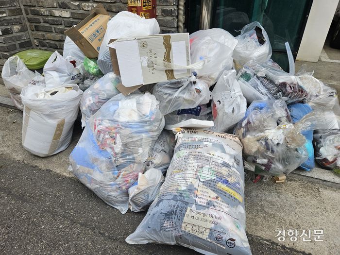 서울 시내 한 주택가에 수거되지 않은 쓰레기가 쌓여있는 모습. 경향신문 자료사진 |
