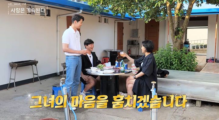 잠시 후 세 사람은 '나솔사계'의 첫 역사가 쓰여진 한 민박집을 데이트 장소로 정해, 바비큐 파티를 벌인다. 세 사람의 묘한 분위기를 지켜보던 MC 데프콘은 "마지막 결투라고 보시면 된다"며 과몰입한다.