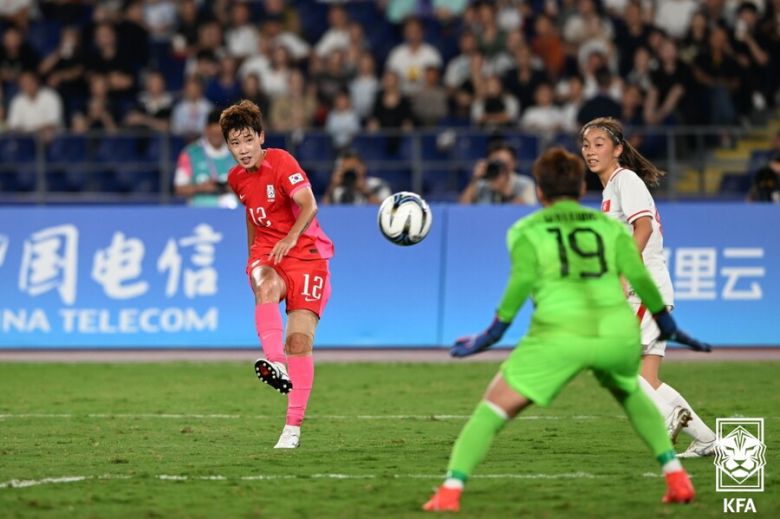 대한민국은 전반 초반부터 홍콩을 강하게 밀어붙였다. 전반 25분 문미라가 홍콩 골문 앞에서 심서연의 날카로운 크로스를 받아 노마크 찬스를 만들었다. 하지만 방향을 틀지 못하며 볼은 골문을 벗어났다. 이어진 권하늘의 중거리 슈팅은 골키퍼 정면으로 향했다.