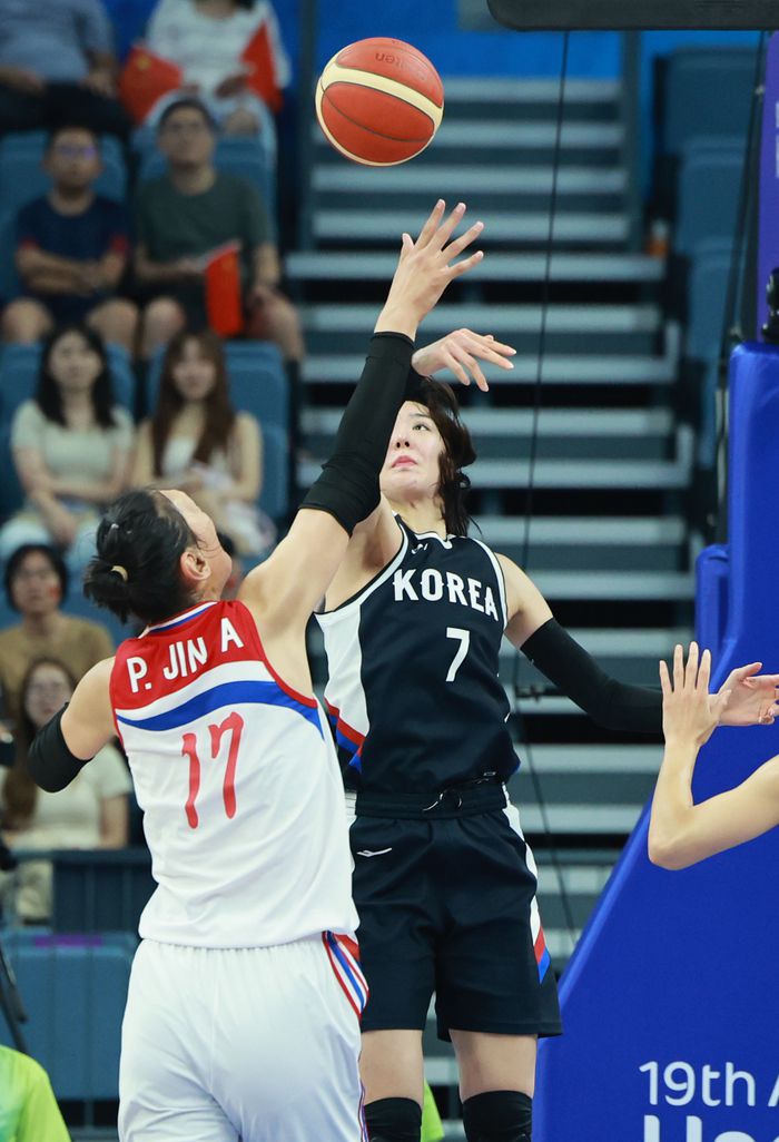 [스포츠서울 | 항저우=김동영기자] 한국 여자농구가 아시안게임에서 북한을 만났다. 완승을 거뒀다. 1쿼터만 힘들었을 뿐, 이후 페이스를 찾으면서 웃었다. 조별리그 2전 2승이다.