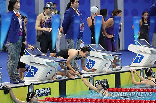 이날 결승에선 '최강' 중국이 예선에서 배영 영자 왕쉐얼의 부정 출발로 실격당하면서 한국에 행운이 찾아왔다. 3분57초67을 기록한 일본에 밀려 목표였던 수영 여자 단체전 첫 금메달은 달성하지 못했으나 2014년 인천에서 달성한 역대 최고 성적 2위와 타이를 이뤘다. 인천 아시안게임 때도 중국 대표팀이 결승에서 실격을 당해 한국이 은메달을 따낼 수 있었다.