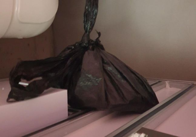 냄새의 진원지를 찾아보니 안방 욕실의 천장이었고 그곳엔 검은 봉투안에 담긴 인분이 있었다.