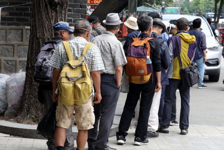 한국경영자총연합회가 발표한 '정년 60세 법제화, 노동시장 과제' 보고서에 따르면 55세 이상 고령 취업자 중 상용직 비중은 35.1%로 15~54세 핵심 근로 연령층의 상용직 비중(65.6%)의 절반 수준에 그쳤다. 대신 55세 이상 고령 취업자 중 임시·일용직 비중(27.7%)과 고용원 없는 자영업자 비중(31.7%)은 전체의 60% 가까이를 차지했다.