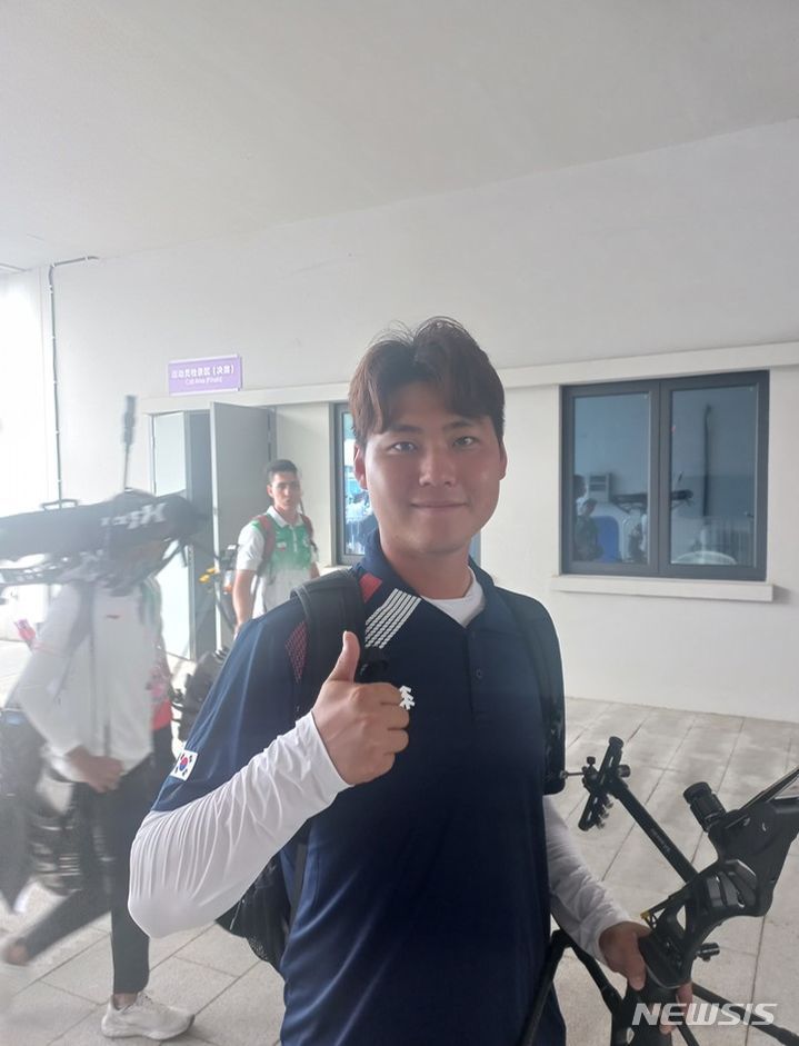 [항저우=뉴시스]박지혁 기자 = 한국 남자 양궁의 이우석(26·코오롱)이 리커브 랭킹라운드를 1위로 통과하며 3관왕에 도전하게 됐다.