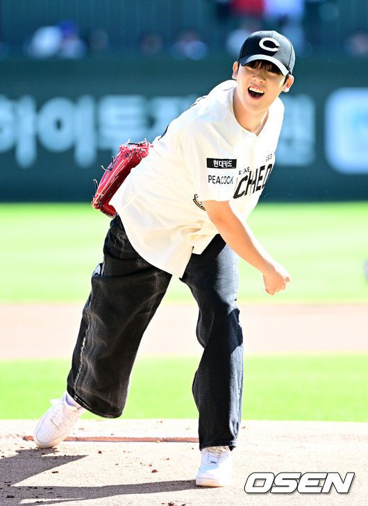 배우 이정하가 시구를 하고 있다. 2023.10.01 /jpnews@osen.co.kr