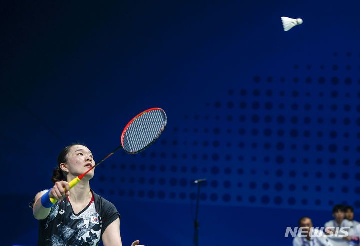 [항저우=뉴시스] 정병혁 기자 = 1일 중국 항저우 빈장체육관에서 열린 2022 항저우 아시안게임 배드민턴 여자 단체전 결승 대한민국과 중국과의 3차전 경기, 김가은이 셔틀콕을 넘기고 있다. 2023.10.01. jhope@newsis.com