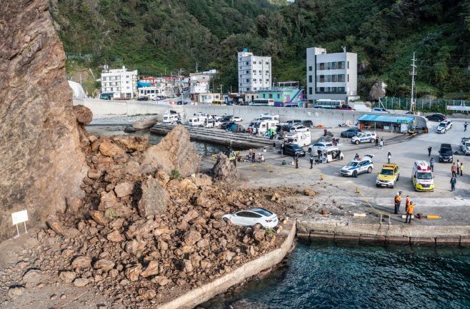 울릉도 거북바위 붕괴 낙석 사고…관광객 4명 부상