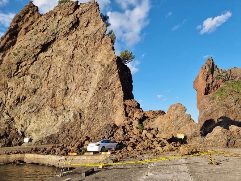 또 무너진 바위 사고지역 아래에 추차된 차량 1대가 파손됐다.