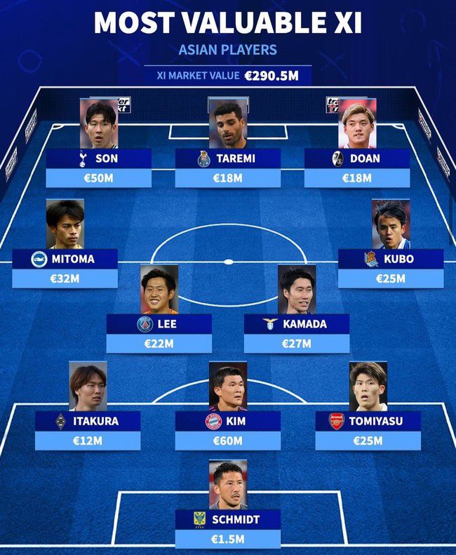 축구통계매체 '트랜스퍼마크트'는 10월 1일(한국시간) 아시아 선수들 중 가치가 높은 선수들로 베스트 일레븐을 구성했다. 일본 선수가 대부분이었다.