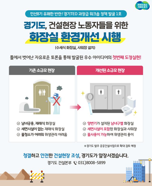 경기도, 소규모 건설공사장 3곳 간이화장실 개선 및 샤워장 설치