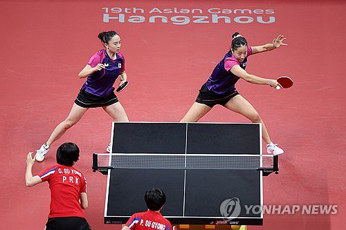 세계 1위 신유빈-전지희 조가 2일 중국 항저우 궁수 캐널 스포츠파크 체육관(GSP Gymnasium)에서 열린 항저우 아시안게임 여자복식 결승에서 북한의 차수영-박수경 조를 게임 스코어 4-1(11-6 11-4 10-12 12-10 11-3)로 이겼다.