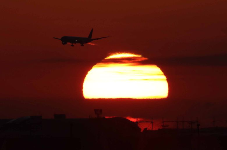어둠을 뚫고 인천공항에 착륙하는 여객기. 중앙일보 |