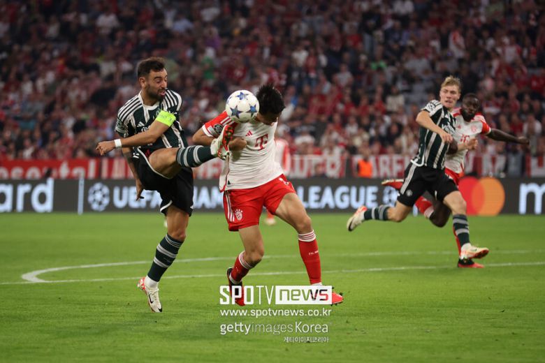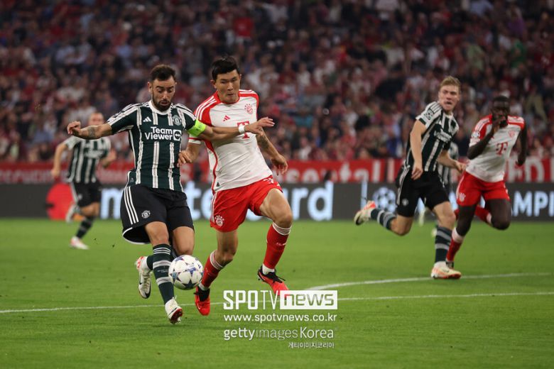 우파메카노와 짝을 이뤄 맨체스터 유나이티드 공격을 막았다. 축구통계매체에 따르면, 맨체스터 유나이티드전에서 블록 1회, 인터셉트 1회, 태클 1회, 지상 경합 성공 1회(1회 시도), 터치 118회, 패스 성공률 92% 등을 기록했다. 바이에른 뮌헨이 전반에 밀리고, 후반 막판 집중력이 떨어졌지만 김민재 홀로 1인분 이상을 했다.