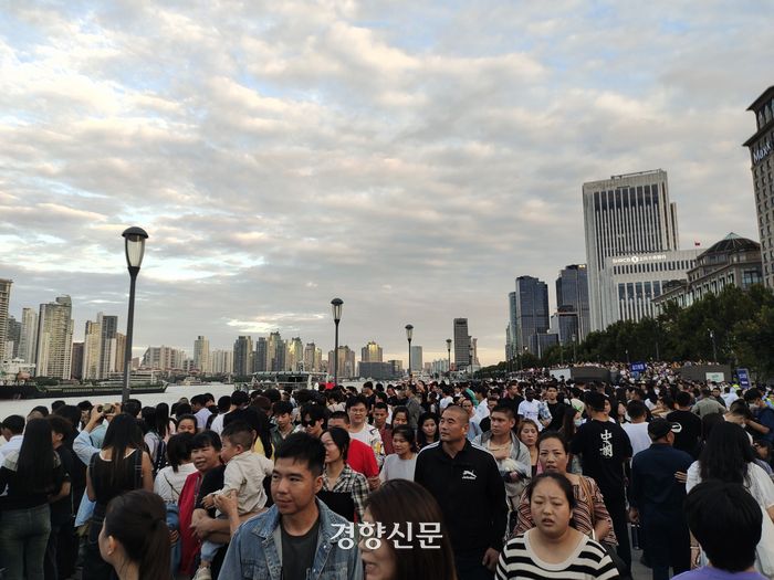 중국 국경절 연휴인 지난 2일 상하이의 대표 명소 와이탄에 인파가 넘쳐나고 있다. 이종섭 특파원