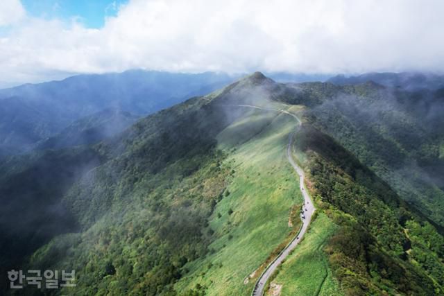 발아래는 깊이를 알 수 없는 절벽인데 조릿대로 덮인 고산 능선엔 시원한 바람이 불어온다. 낯선 행성에 불시착한 것처럼 모든 것이 비현실처럼 느껴진다. UFO라인이라 불린 이유는 이질적인 풍광이 아니라 도로가 개설되고 찍힌 사진 한 장 때문이다. 한 직장인이 등산 중 촬영한 사진에 UFO로 추정되는 물체가 산봉우리 위로 날아가는 듯한 모습이 찍혔다. 언뜻 필름 상의 먼지 같이 보이는데 지역신문에 실린 이후 이 천공의 드라이브 코스는 UFO라인으로 불리게 됐다. 워낙 높고 험한 길이라 11월 말부터 이듬해 4월 중순까지 동절기에는 폐쇄된다.