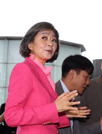 김행 여성가족부 장관 후보자가 지난달 21일 서울 종로구 인사청문회 준비 사무실로 출근하고 있다. 백소아 기자 thanks@hani.co.kr |