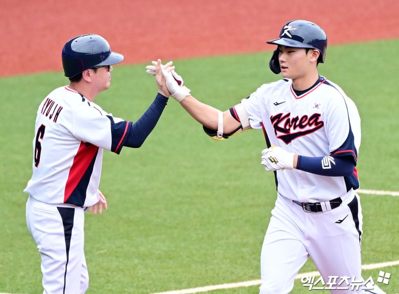 성과는 또 있었다. 이번 대회 처음으로 선발출전한 유격수 김주원이 한국이 6-0으로 앞선 3회말 솔로 홈런을 쏘아 올리고 짜릿한 손맛을 봤다. 자신의 성인 국가대표 데뷔 첫 안타를 홈런으로 장식하고 자신감을 한껏 끌어올렸다.