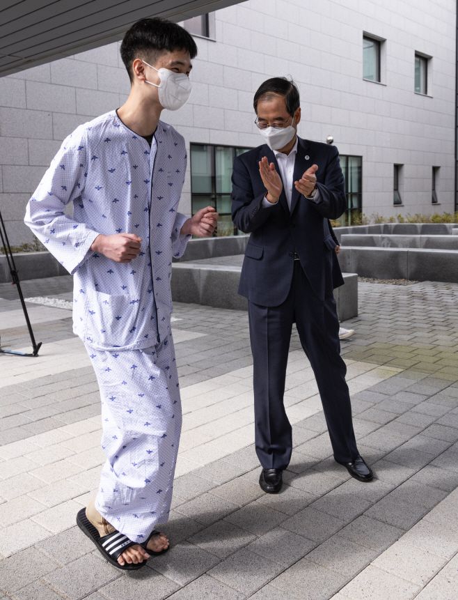 한 총리는 "국군수도병원에 계시는 훌륭한 의료진들이 잘 치료해주고, 본인도 재활 의지도 강해 이렇게 회복되니까 너무 반갑다"고 말했다.