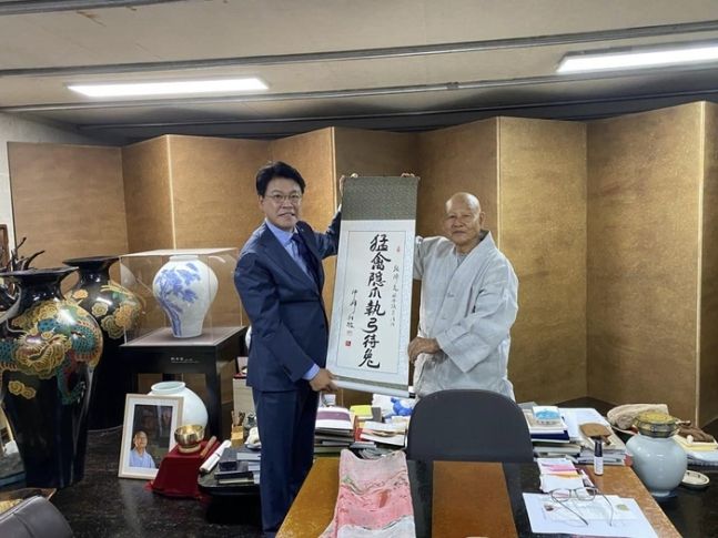 장 의원은 “용맹한 새는 발톱을 숨긴다. 활을 잡고 토끼를 기다리라는 뜻”이라며 “큰 스님의 가르침, 깊이 감사드린다”고 했다.