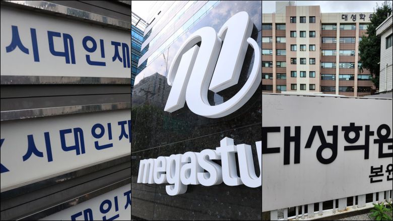 시대인재 메가스터디 대성학원 로고.(왼쪽부터). |