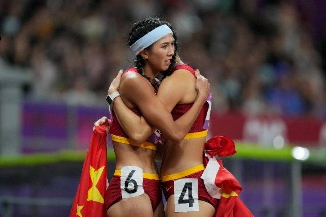 4일(한국시간) 홍콩 사우스차이나모닝포스트(SCMP)에 따르면, 지난 1일 항저우 아시안게임 여자 육상 100m 허들 결승전 직후 트랙 위에서 1위로 들어 온 중국 린위웨이가 2위로 결승선을 밟은 자국 동료 우옌니를 감격해 안았다.
