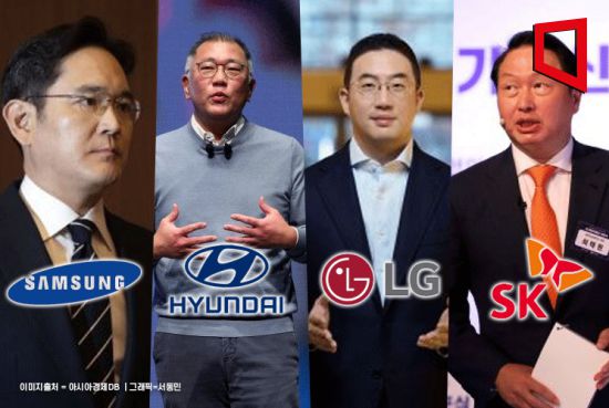 왼쪽부터 이재용 삼성전자 회장, 정의선 현대자동차 회장, 구광모 LG 회장, 최태원 SK 회장 모습. [사진=아시아경제DB]