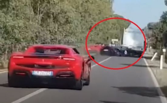 이탈리아 슈퍼카 투어 행사 중 페라리가 람보르기니를 들이받는 사고가 벌어졌다. 이 사고로 인해 화재가 발생하면서 2명이 숨졌다.