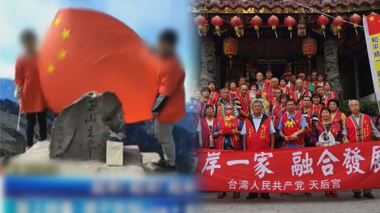 대만에서 가장 높은 '위산' 정상에서 오성 홍기를 든 아이들이 중국 국가를 부르고 있습니다.