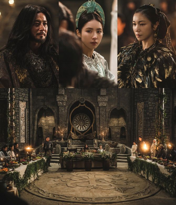 공개된 사진 속에는 술과 음식들이 가득 차려진 성대한 연회장 안에서 옅은 조소를 띈 타곤의 모습이 담겨 있다. 이와는 대조적으로 대제관 탄야와 왕후 태알하의 표정은 어느 때보다 무겁게 가라앉아 있다. 연회라는 말이 무색하게 고요한 침묵만이 흐르는 이곳에서 타곤과 탄야, 태알하는 이전과 차원이 다른 충돌로 갈등을 폭발시킬 예정이다.