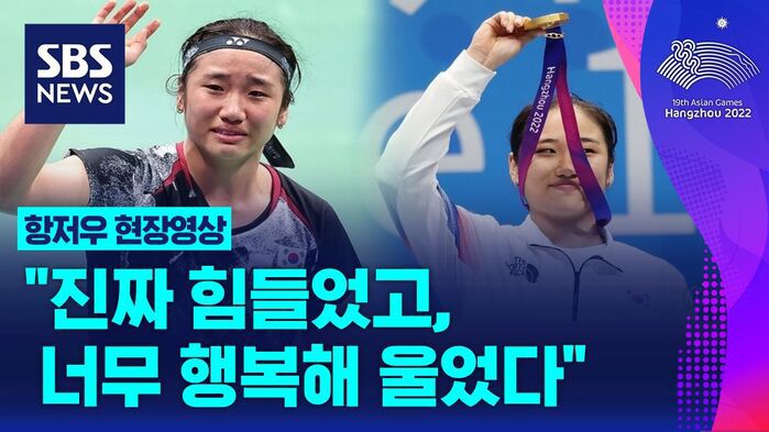 부상 악재를 딛고 아시안게임 배드민턴 여자 단식 정상에 오른 안세영 선수가 눈물의 인터뷰를 진행했습니다. 세계랭킹 1위 안세영은 한국 선수로는 29년 만에 아시안게임 정상에 올랐습니다. 경기 중 무릎 통증으로 붕대 투혼을 벌인 안세영은 금메달을 딴 뒤 "정말 힘들었다"면서 "그래도 포기하지 않으니까 되더라"라고 소감을 밝혔습니다. "이렇게 값진 결과를 얻을 수 있어서 너무 행복하다"고 밝힌 안세영 선수가 눈물을 흘린 이유, 인터뷰 풀영상에서 확인할 수 있습니다.
