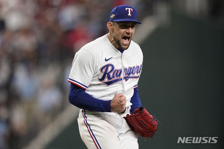[알링턴=AP/뉴시스] 네이선 이발디(텍사스 레인저스)는 11일(한국시간) 미국 텍사스주 알링턴의 글로브 라이프 파크에서 열린 볼티모어 오리올스와의 메이저리그(MLB) 아메리칸리그 디비전시리즈(5전 3선승제·ALDS) 3차전에서 7이닝 1실점 호투로 승리투수가 됐다. |