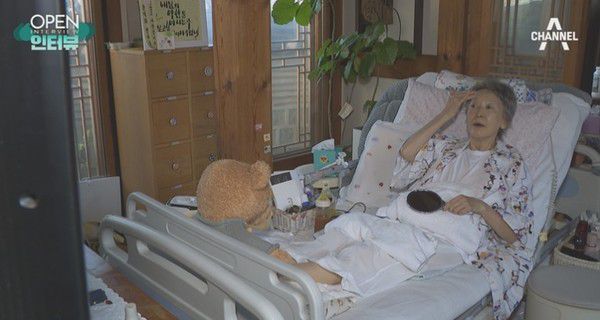 수술 후 36kg까지 빠져버린 체중에 낙엽처럼 말라버린 피부를 뚫는 주삿바늘은 괴성을 지를 만큼 아팠다고 말하는 윤석화.