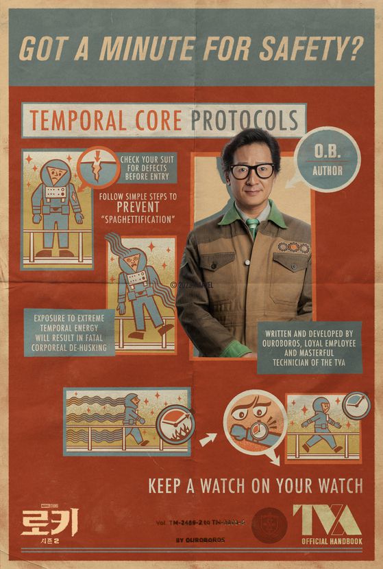 공개된 포스터는 마치 TVA의 안전 프로토콜 안내 포스터 같은 콘셉트의 비주얼로 시청자들의 과몰입을 부른다. 포스터를 가득 채운 레트로 감성의 일러스트들은 지난 에피소드에서 로키의 불규칙한 타임슬립을 해결하기 위해 바깥 공간으로 나선 모비우스의 긴박한 상황을 연상시키는 동시에 그들이 과부하가 걸린 시간 직조기를 무사히 고쳐낼 수 있을지 호기심을 더한다.