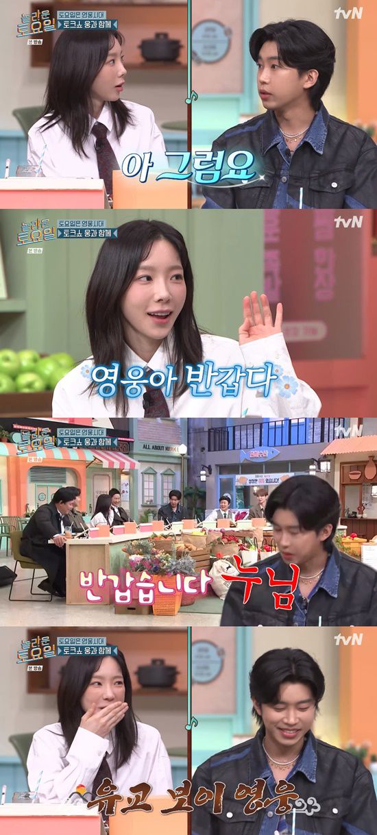 여기서 멈추지 않고 연상인 태연에게 임영웅은 "반갑습니다 누님", "누이"라고 구수한 인사를 전해 웃음을 더했다.