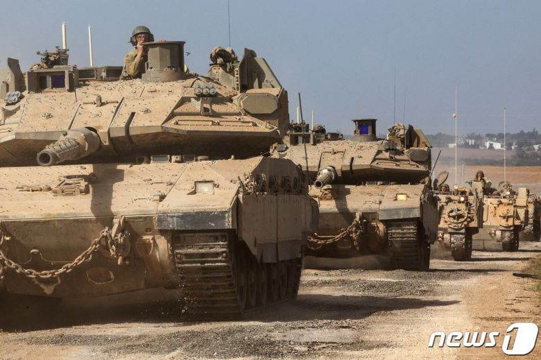 이스라엘 탱크와 전차들이 13일(현지시간) 이스라엘 남부 팔레스타인 가자지구 접경지에 배치되고 있다. ⓒ 로이터=뉴스1 ⓒ News1 최종일 기자 |