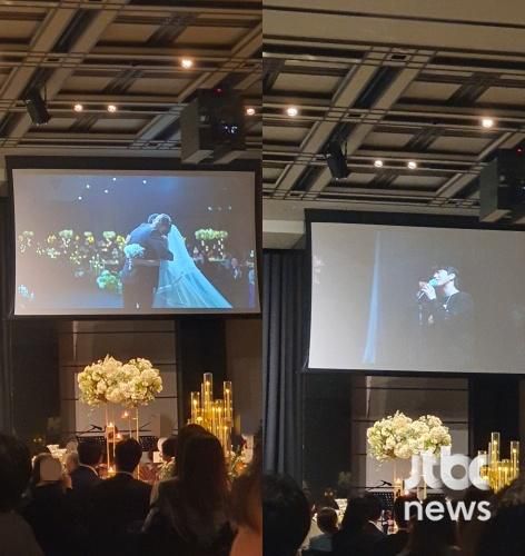 14일 서울 모처에서 결혼식을 올린 그룹 에이핑크 출신 홍유경과 축가를 맡은 그룹 B1A4 산들의 모습. 〈사진=독자제공〉 |