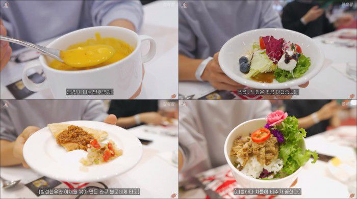 이후 4번째 코스로는 횡성한우와 채소를 볶아 만든 라구 볼로네제 타코가, 5번째 코스로는 차돌박이 비빔밥 등이 나왔다. 라구 볼로네제 타코에 대해서는 "빵이 무슨 스펀지 먹는 것 같다. 스펀지처럼 푹신푹신하면서 젖은 듯한 식감이 조화롭지 않다. 맛으로 볼 때 일반 타코 집보다 맛이 없다"고 했다. 차돌박이 비빔밥은 그중 가장 맛은 괜찮으나, 밥이 너무 차가워서 비벼지지도 않는다고 했다.