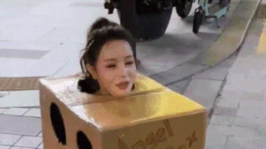한 여성이 박스만 걸치고 있다. [사진=온라인 커뮤니티 갈무리]