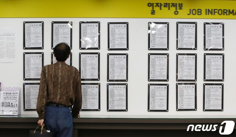 서울 마포구 서울서부고용복지플러스센터를 찾은 시민이 구인정보를 보고 있다./뉴스1 ⓒ News1 김민지 기자 |