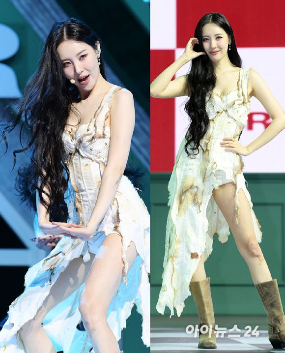'불 태우고 커피 부어 만든 색다른 패션' 가수 선미가 17일 오후 서울 용산구 한남동 블루스퀘어에서 열린 새 싱글 앨범 '스트레인저(STRANGER)' 발매 기념 쇼케이스에서 '스트레인저' 무대를 선보이고 있다. [사진=정소희 기자] |