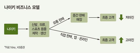 도나호는 D2C 전략을 선언하며 아마존에서 나이키를 철수시켜 더 큰 화제를 모았다. 그간 아마존을 비롯한 유통 채널이 나이키 판매에서 차지하는 비율은 84%에 달했다. 도나호 CEO는 안전한 판매 채널에 의존하지 않고 직접 고객과 만나겠다고 선언했다. 온·오프라인 유통 채널 수수료가 나이키 입장에서는 만만치 않다고 판단했기 때문이다. 이후 나이키는 나이키 채널을 통해 소비자에게 직접 판매한다. 그러나 경기 악화로 판매가 감소하면서 오히려 직접 판매를 위한 비용이 더 증가하는 상황에 놓였다.