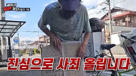 남성은 '한국 위안부에 사죄하라'라고 적힌 종이패널을 보여주며 한국말로 "일본이 예나 지금이나 조선과 한국에 나쁜 짓을 하고 있습니다. 마음속으로부터 사죄드립니다"라고 적힌 한글을 읽었다. 종이패널에는 한국말뿐 아니라 한자로 우리나라 독립유공자들의 이름이 빼곡히 적혀있었다.