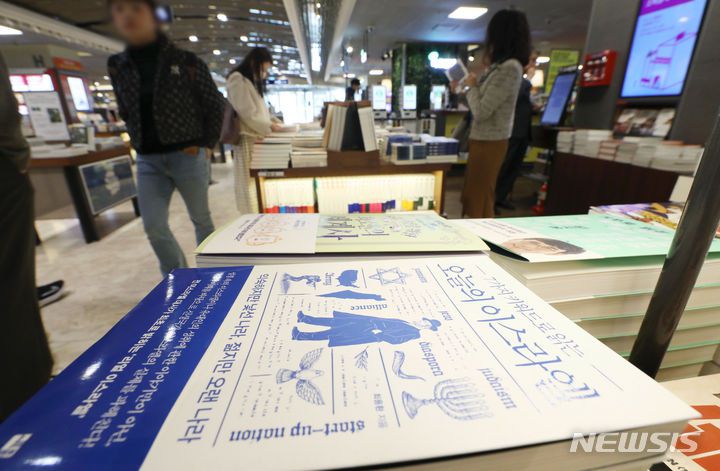 [서울=뉴시스] 홍효식 기자 = 이스라엘과 팔레스타인 무장 정파 하마스 간 분쟁이 격화되는 가운데 국내 서점가에 세계사 책 판매가 늘고 있다. 교보문고에 따르면 최근 역사·문화 도서 중 이스라엘과 중동 지역을 다룬 분야 도서의 판매량이 2.3배 상승했다. 사진은 20일 서울 종로구 교보문고에서 관련 서적이 진열돼 있다. 2023.10.20. yesphoto@newsis.com