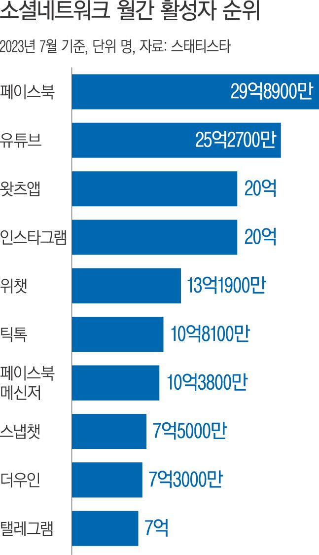 우리는 여러 소셜미디어들을 자주 써오면서도 이 연결망이 얼마나 많은 사람들을 연결하고 있는지 체감하지 못할 때가 있다. 어차피 이 연결망이 내 레이더 안으로 끌고 들어오는 친구들과 계정들은 적정선에서 제한되어 있기 때문이다. 그러나 2023년 2분기 기준 페이스북의 활성 사용자 수는 거의 30억명에 육박하는 상황이고, 유튜브는 25억명, 인스타그램은 20억명에 가깝다. 매일 페이스북을 적극적으로 사용하는 일일활성 사용자 수만 하더라도 20억명에 가깝다. 온라인 네트워크로 연결돼 지식, 의견과 뉴스를 비롯한 정보를 발신할 수 있는 사람들의 수가 그만큼 늘어났다는 뜻이고, 이는 편지를 통해서만 소통하던 편지공화국의 지식인들로서는 가히 상상하기 어려운 수이다.