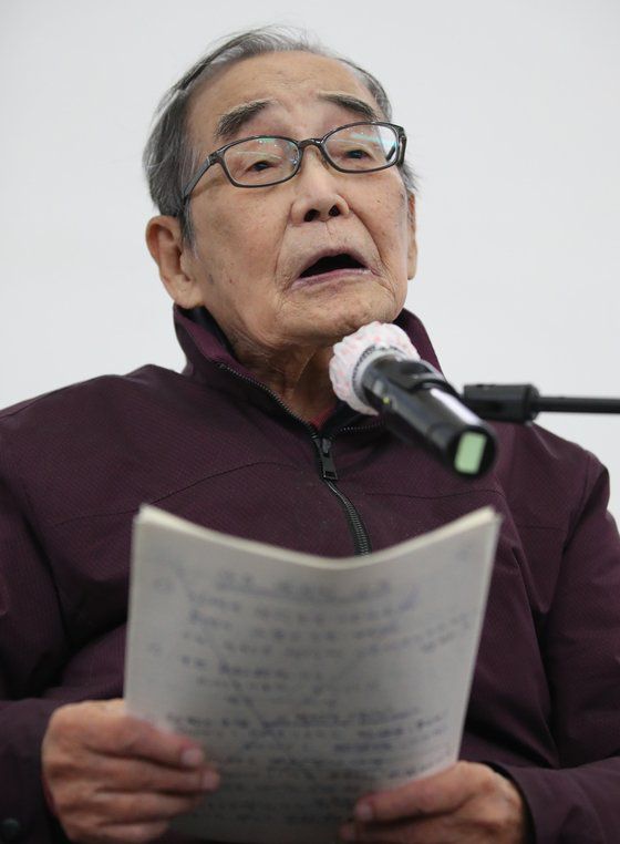 2022년 10월 25일 서울 중구 서울시청 태평홀에서 한국 최초 에베레스트 원정대 대장을 역임한 김영도 전 의원이 백수(白壽)를 맞아 ″나의 마지막 강의 : 당신은 알피니스트입니까″로 고별 강연을 하고 있다. 뉴시스 |